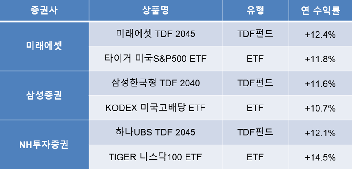 퇴직까지 시간이 많이 남았다면, 수익률에 민감한 ETF 포트폴리오 구성도 훌륭한 방법입니다.