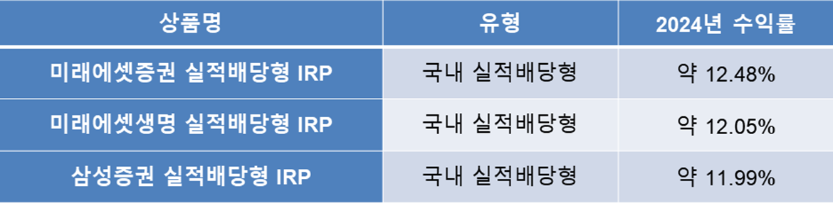✅ 2024년 기준으로 국내 IRP 실적배당형 수익률 상위 3개 상품을 정리했습니다.