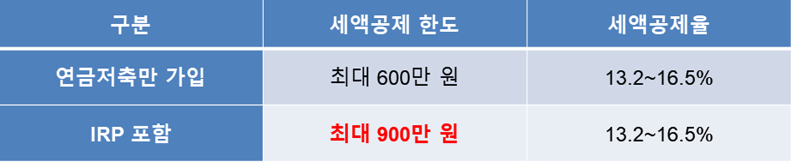 받을 수 있다는 점이죠. (연금저축 600만 원 + IRP 300만 원)