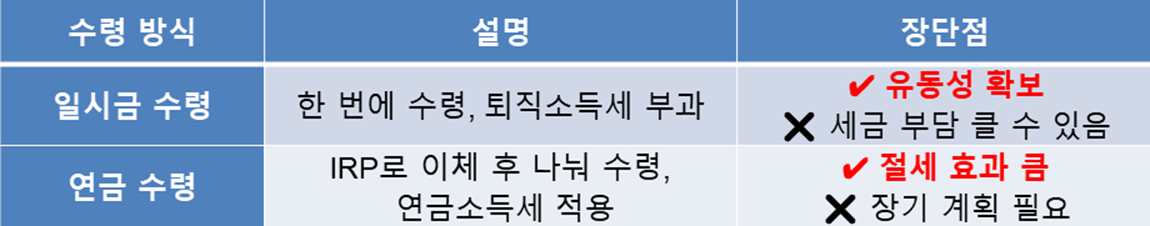 ✅ IRP 투자로 자산을 늘리는 것도 중요하지만, 수령방법에 따라서 세금 차이가 큽니다.