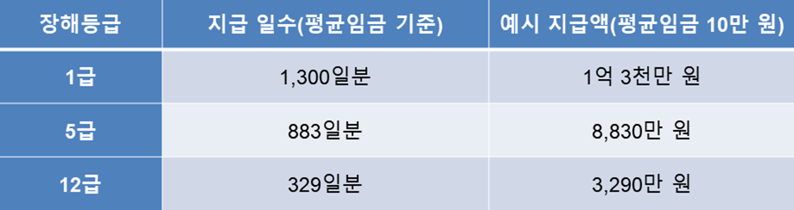 📊 장해급여 등급표 예시