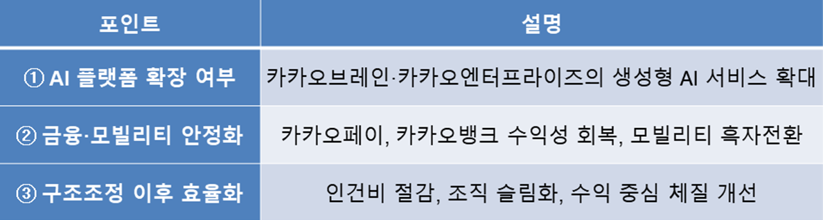 ✅ 카카오의 강점은 단순한 기술 트렌드가 아니라 사업 구조 전반의 재편에 있습니다.