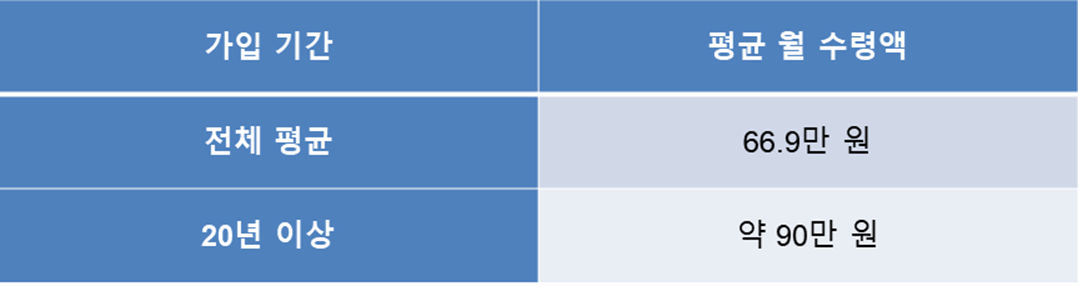 • 국민연금납부기간 길어질수록 월 수령액도 상승
