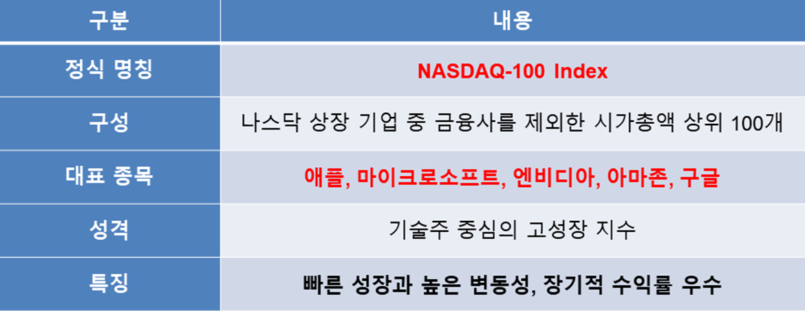 이처럼 나스닥100은 미국 경제 심장부이자, 세계 증시의 방향을 이끄는 핵심 지수입니다.