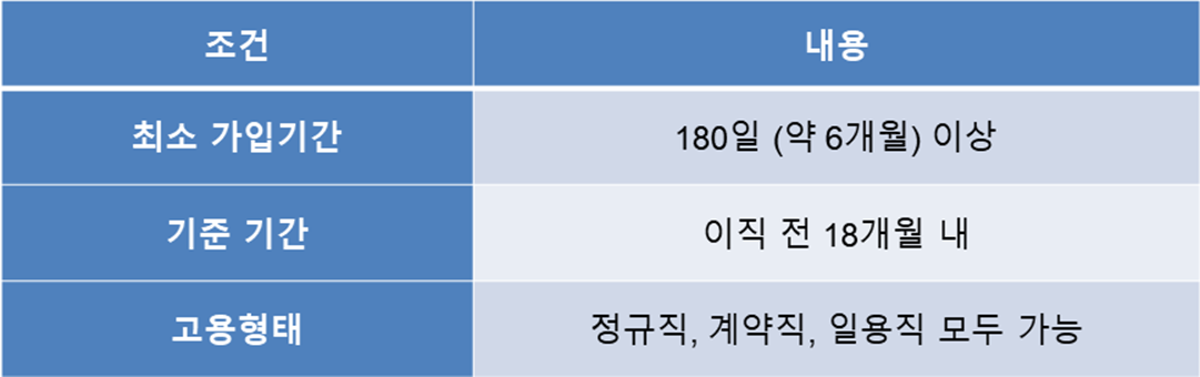최근 18개월 동안 고용보험에 가입된 기간이 총 180일 이상이어야 합니다.