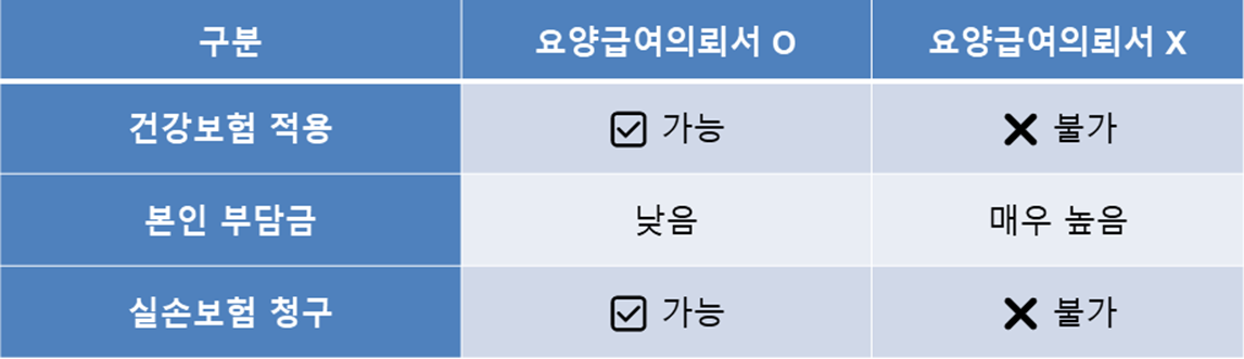 → 쉽게 말해, 요양병원 입원 시 요양급여의뢰서를 챙겨야 의료비 폭탄을 막을 수 있습니다.