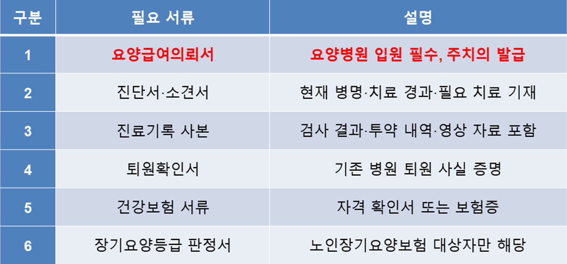 ✅ 일반 병원에서 요양병원으로 옮길 때 필요한 서류는?