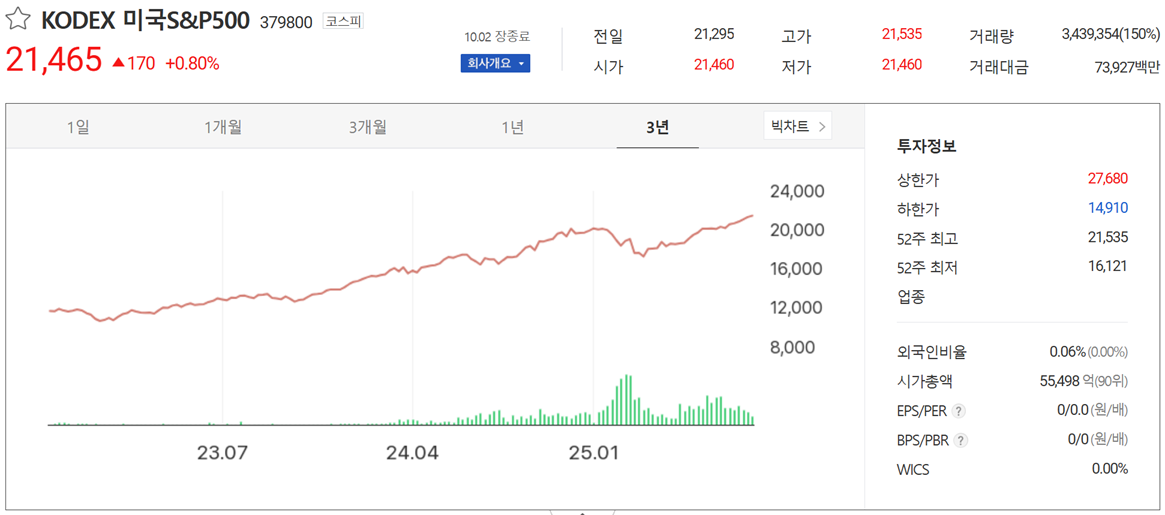 그러다 알게 된 게 바로 코덱스 미국 S&P500 ETF였습니다.