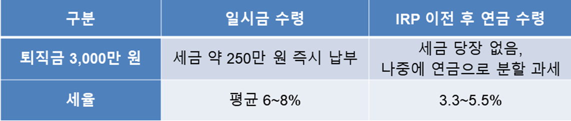 2️⃣ 퇴직소득세 즉시 납부 → IRP는 세금 이연 및 절세
