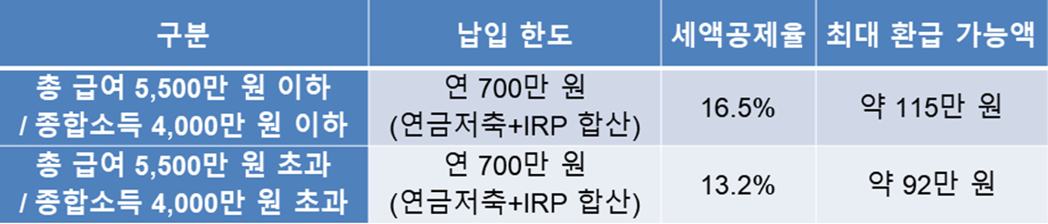 (연금저축 합산)까지 세액공제를 받을 수 있습니다.