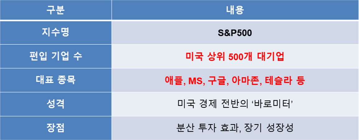 ✅ S&P500은 미국 상위 500개 기업으로 구성된 대표 지수입니다.