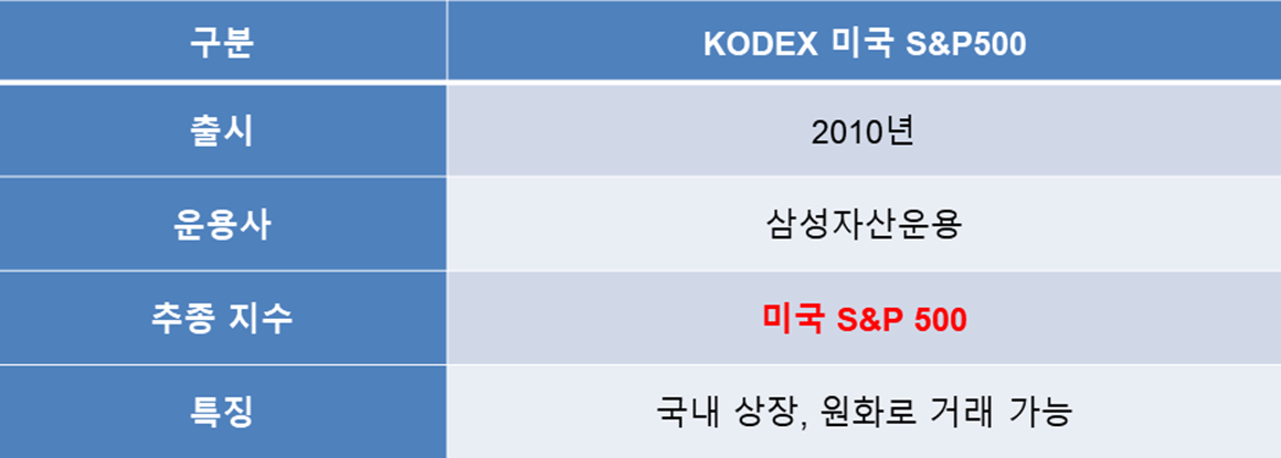 오늘은 KODEX 미국 S&P500 ETF의 특징과 수익률을 정리해 드리고,